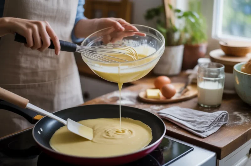 copri come preparare crepes perfette con ingredienti semplici come farina, latte e uova.