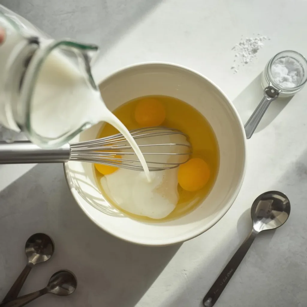 Incorpora lentamente la farina setacciata con un colino per evitare la formazione di grumi e ottenere una pastella liscia e omogenea.