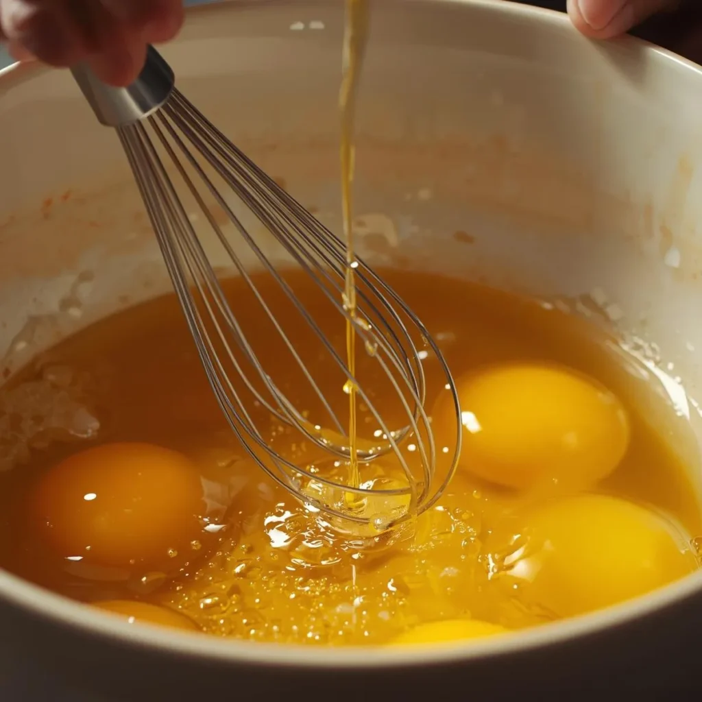Rompi le uova intere in una ciotola e sbattile leggermente con una frusta.