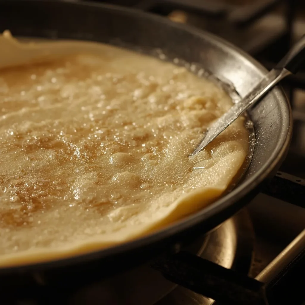 Gira la crêpe con una spatola e cuoci brevemente l’altro lato.