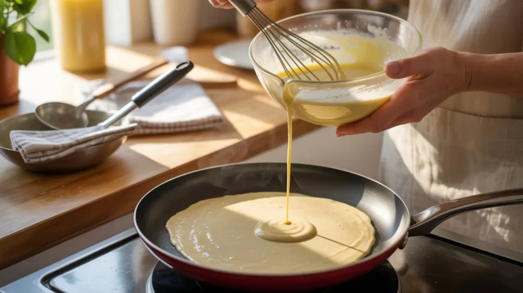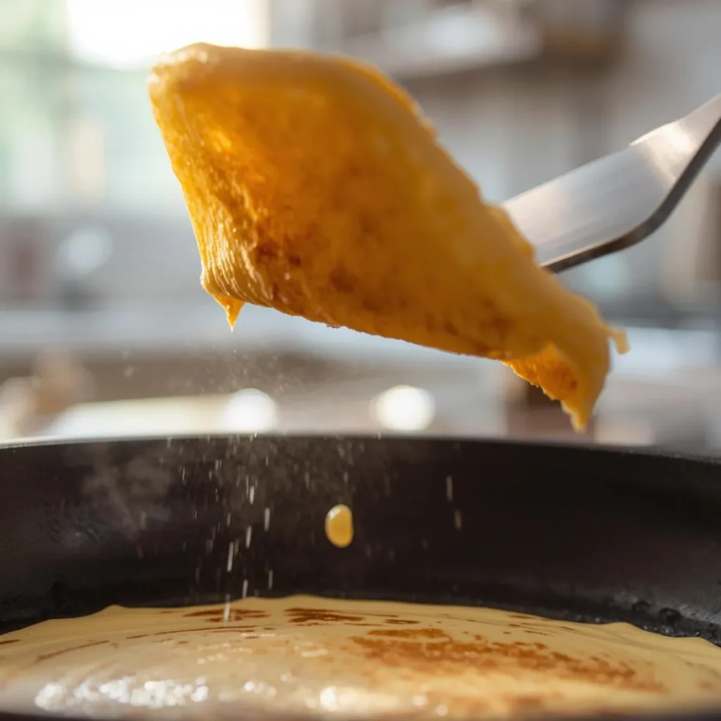 Quando lavoro con un impasto neutro, a volte preferisco una versione più dolce aggiungendo 30 g di zucchero oppure 2 cucchiai di miele, scegliendo la quantità in base all’umore del giorno. Puoi anche sostituire la cannella con la curcuma per dare un colore caldo che richiama delicatamente l’aspetto delle crêpes con uova, senza alterare l’equilibrio e la semplicità della ricetta.