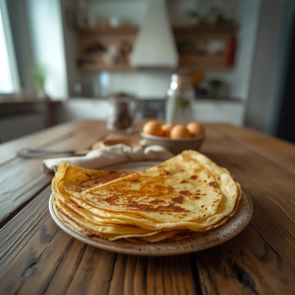 Nelle mattine tranquille, scelgo spesso le crêpes senza uova perché le trovo più leggere e piacevolmente fresche, il tipo di dolce che si adatta perfettamente alla colazione, a uno spuntino delicato o persino a un dessert veloce quando il tempo scarseggia. Il loro sapore neutro le rende ideali sia per farciture dolci che salate, e mi piace vedere come ognuna risulti leggermente diversa dall’altra, ma sempre deliziosa e naturalmente facile da preparare anche all’ultimo momento.