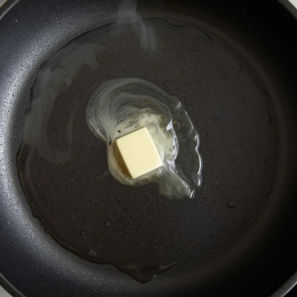 scalda una padella per crêpes o una padella antiaderente e spennellare con un po’ di burro